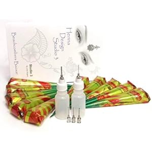Henna Tattoos for KidsBeachcombers! Henna Tattoo 10 Pre Mixed Paste Cone Party Pack w/Oil & Fine Metal Tip Applicator Bottles