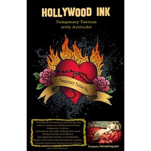 HOLLYWOOD INK Body Art Kit : This professional series kits contains 1 tube of HOLLYWOOD INK tattoo past the same fomula used by the makeup artist in hollywood to make temporary tattoos on the movie stare, plus, we have added Henna the ingredients to assure extra long lasting tattoos. Colors included in this kit are 1 Black. This is the same fomula used by the makeup artists in hollywood to make tempory tattoos on the movie stars, plus, we have added Henna to assure extra long lasting tattoos. HOLLYWOOD INK is extreemly realistic looking.This kit also includes 3 applicator bottles to apply the HOLLYWOOD INK with henna, 4 design pages and a transfer pen. Using the transfer pen you transfer the designs from the design book on to your skin before applying HOLLYWOOD INK, then after transfering the design from the design book you apply the HOLLYWOOD INK. It's very easy to use. Complete application instructions are included with each kit. This kit will make over 20 realistic temporary tattoos. Just like you see in HOLLYWOOD movies.
